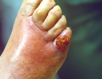 the foot or lower leg is usually red, hot, swollen, and tender. A classic