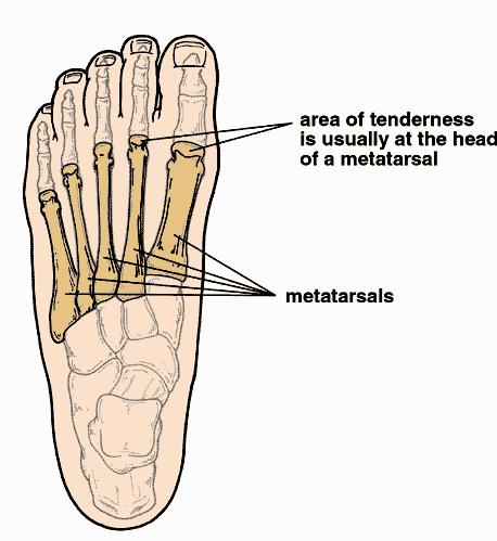 Metatarsalgia (ball-of-foot-pain) is often located under the 2nd, 3rd, and